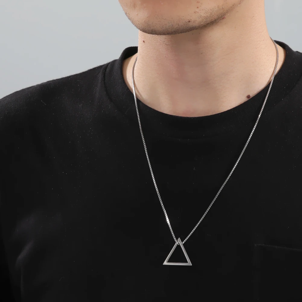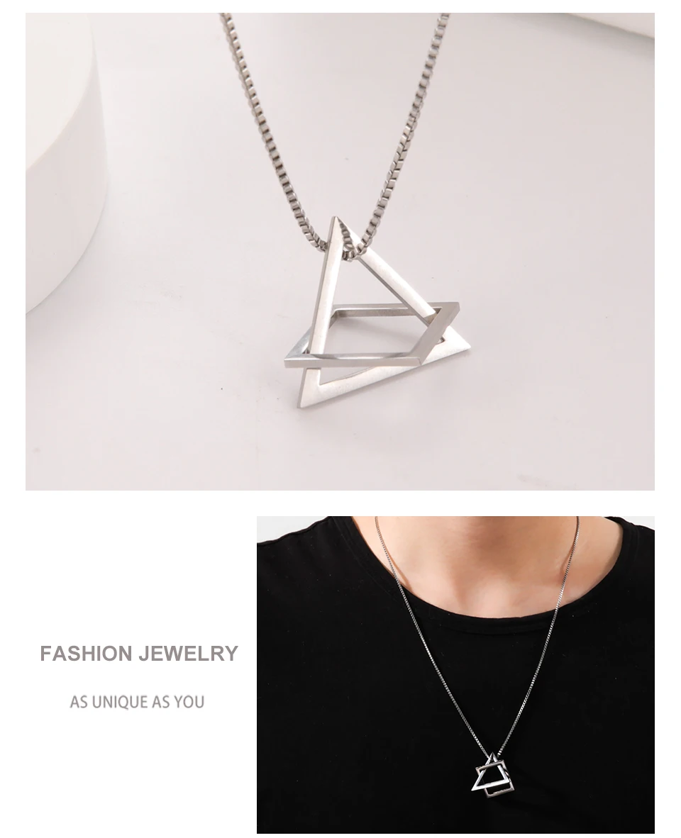 Black Triangle Necklace for Men Minimal Geometry Pendant Stainless Steel Necklace Grunge Punk Male Jewelry Birthday Gift