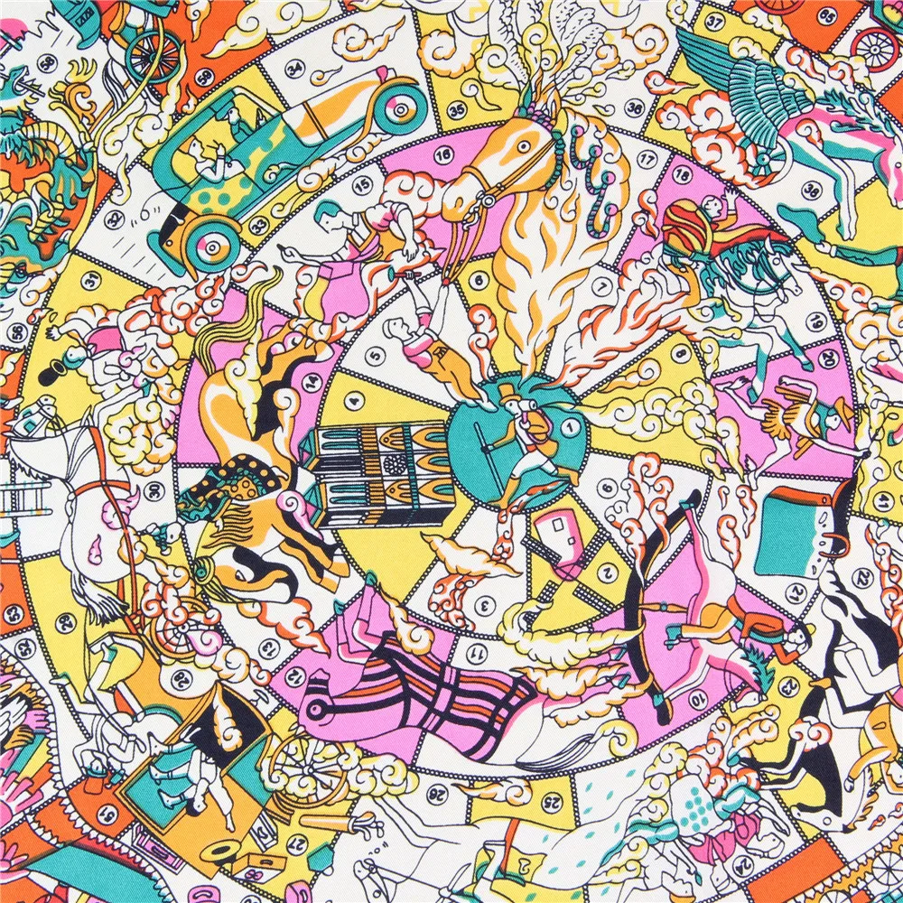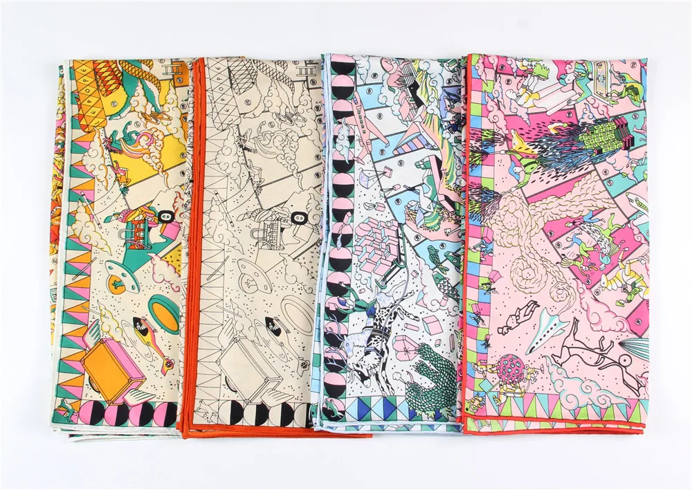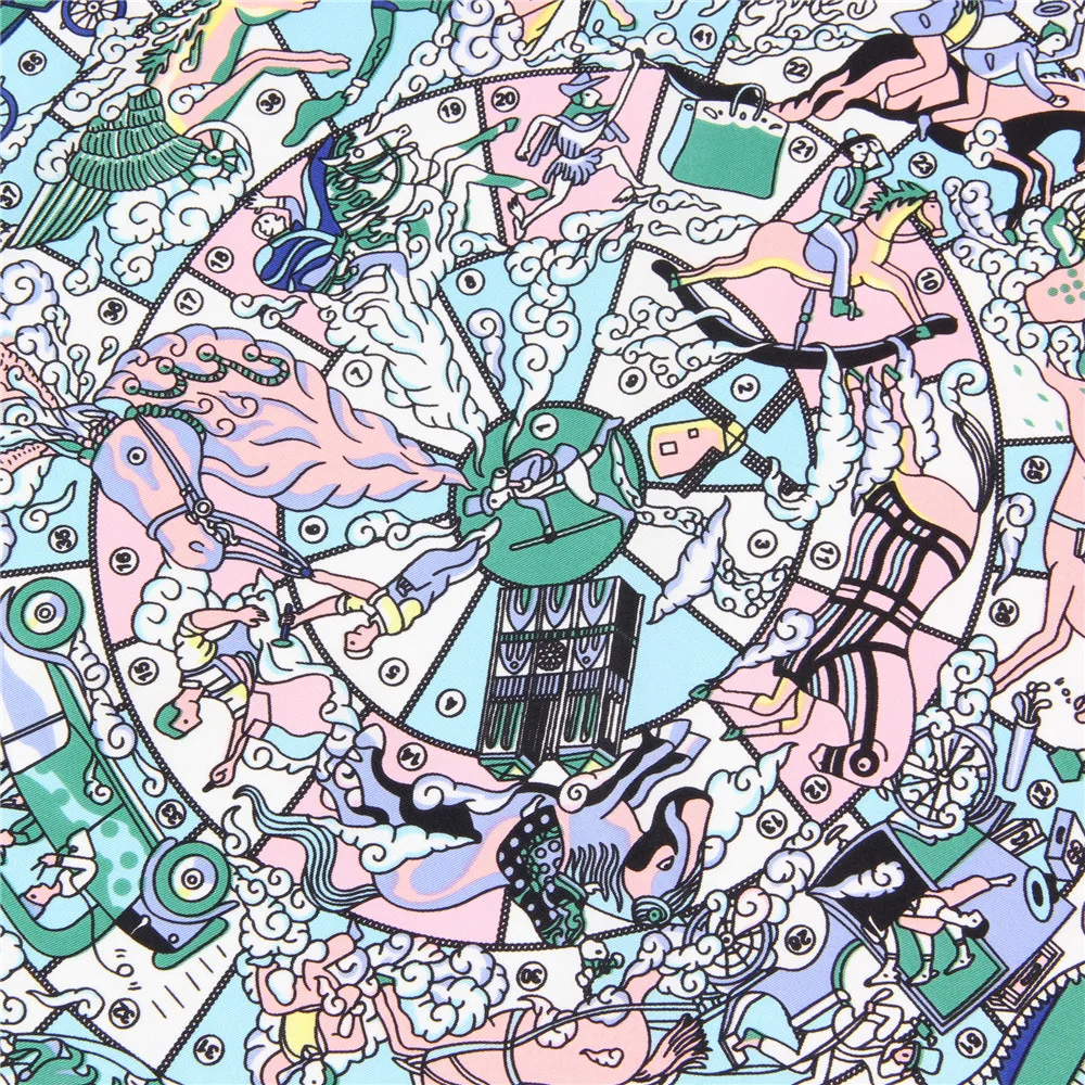 Manual Hand Rolled Twill Silk Scarf Women Hopi Print Square Scarves Wraps Echarpes Curled Foulard Femme Bandana Hijabs 90CM