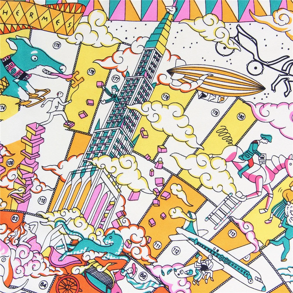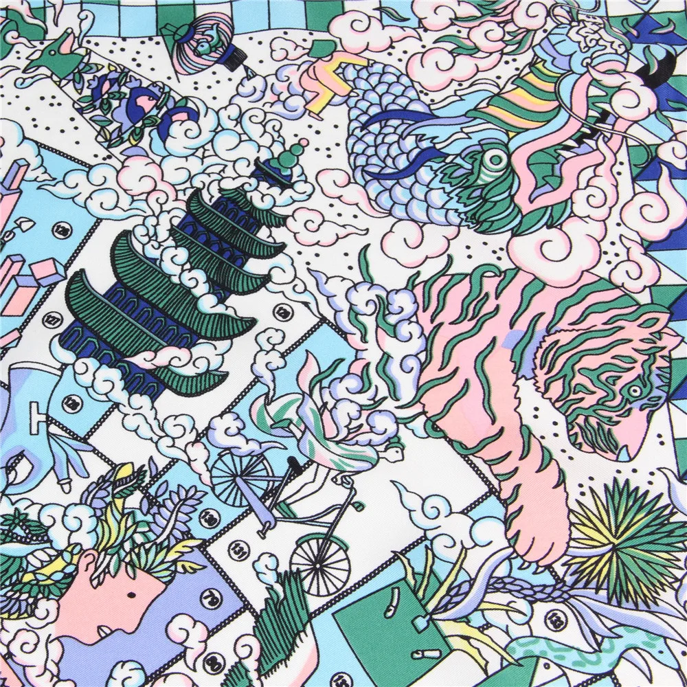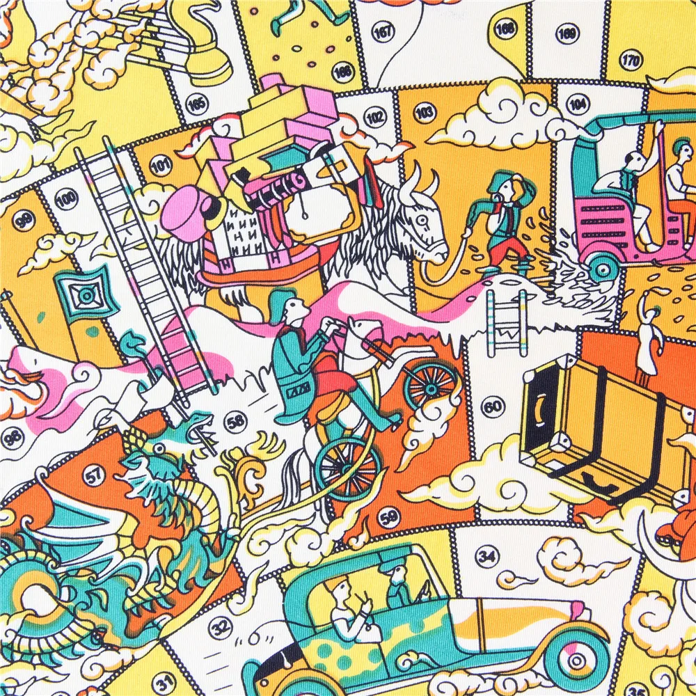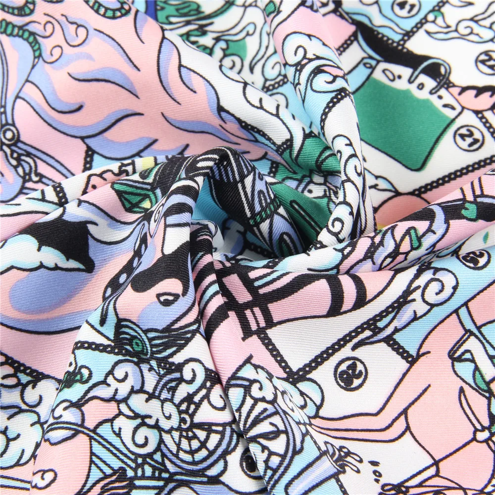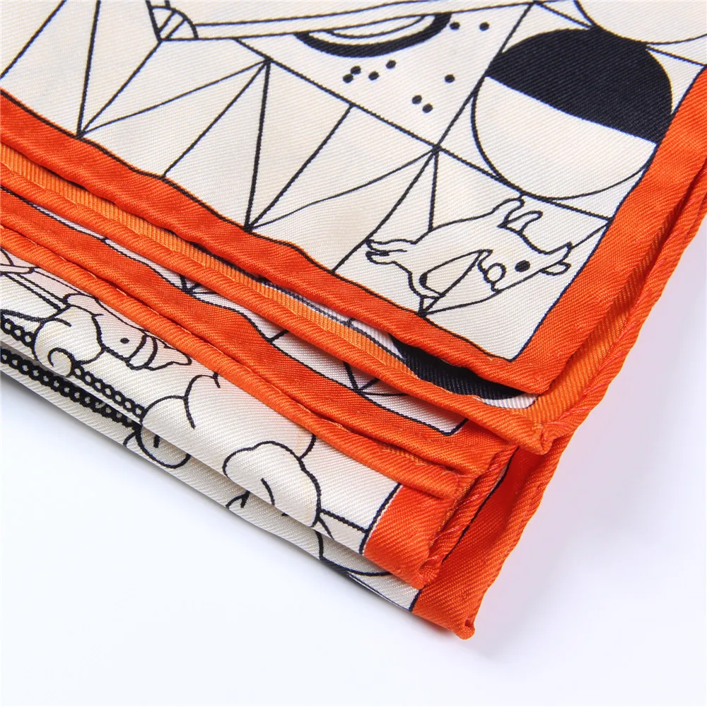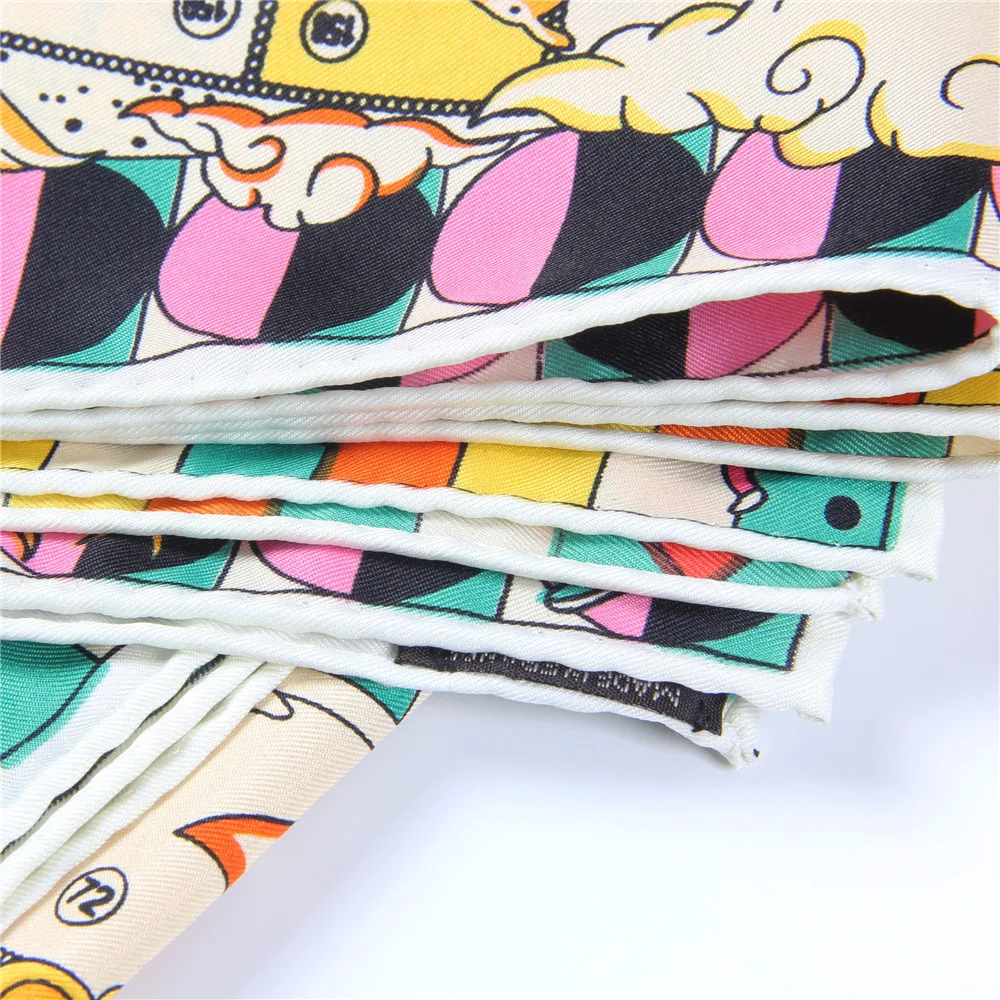 POBING Manual Hand Rolled Twill Silk Scarf Women Hopi Print Square ScarvesWrapsEcharpes Foulards FemmeBandana